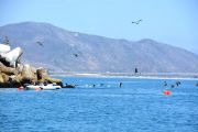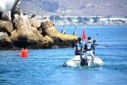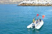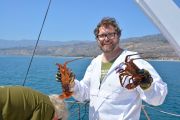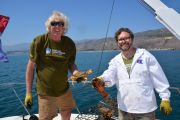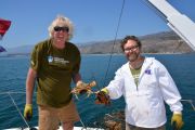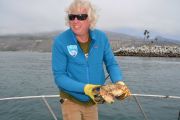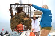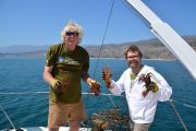 Departing from our boat slip in the Channel Islands Harbor on Sunday, August 8th, eleven ODA volunteers headed up the coast onboard our flagship vessel Mr. Barker’s LegaSea. Our destination was a site that volunteer Rob Broesamle had told us about: Rincon Island. Rob has seen many abandoned traps there on his recreational dives in the past and thought we might be able to locate and remove some of it.
