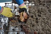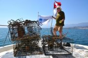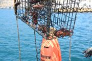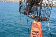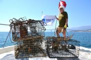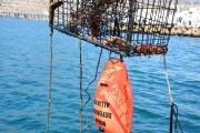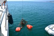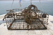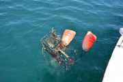 As soon as we had the first trap hooked up to the davit line (a crane attached to the bow, or front, of our boat), another set of lift bags broke the surface about 200 yards away. This sent the RIB team into recovery mode again.