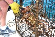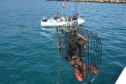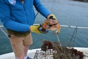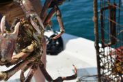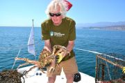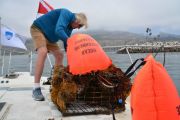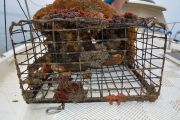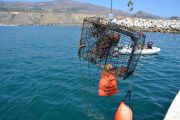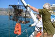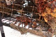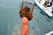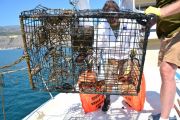 For the second dive, again the teams went their separate ways and we saw two more traps come to the surface. Just like earlier, each one of the traps had animals stuck in them. One had five lobsters in it, along with two rock crabs. The last trap had a huge sheep crab in it.