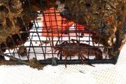 When the RIB came back with the second trap, and we brought it onto the front deck we could see more animals in this one, too. This time we couldn’t get the door open, so we realized we’d have to cut the top of the trap off in order to get the animals out of there. Steven and I grabbed the bolt cutters and went to work.