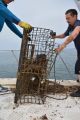As we were hauling that first trap onto the deck, we could see that there were live animals in it. Once we landed it on the deck, we broke the trap door open and released the critters.