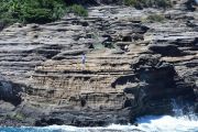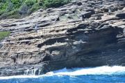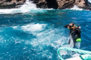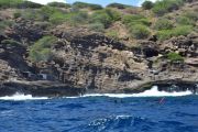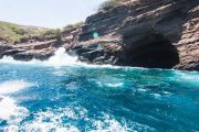 We headed out in rolling seas to Sea Cave which is a popular fishing spot on the Eastside of Oahu. In the first photo, you can see a cave! Amazing isn't it?! Be sure to look at all of the photos in the gallery below. You can see why they call this area Spitting Caves because it looks like the splashing water is being spit out of the cave.