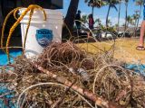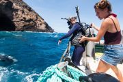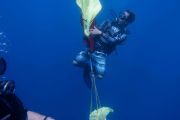 Our mission for a debris-free sea is an important one. Just look at the tangled mess of lines (hundreds of feet!) and lead weights and hooks. Please open the photo gallery below to see more images of the debris we removed!