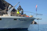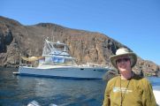 We were pleasantly surprised when we left Oxnard to find flat seas. As we were making the 12-mile trek to Anacapa, we saw several pods of dolphins. For the first time ever, we didn’t stop to enjoy their company, ignoring my mantra that WE BREAK FOR DOLPHINS AND WHALES. We were on a mission, had a set timeline, and kept focused on the task at hand.
