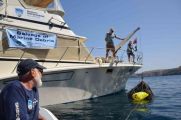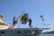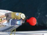 Using underwater scooters, they dropped down into 70 feet of water and proceeded to search for the net. After about 20 minutes we started seeing lift bags break the surface. Yeah! Always a good sign.