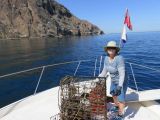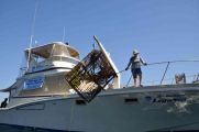 They hauled it over to our boat the Mr. Barker’s LegaSea, where Lisa and I hauled it up using our davit (crane). This trap was so big that there was no way we were going to be able to haul it up by hand. Just another reminder of how nice it is to have the LegaSea in our box of tools. Thank you ever more, Mr. Bob Barker!