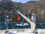 Then on Sunday, September 25th, we headed back out to the island to tackle that net. As we were preparing for the trip, I read a weather report that said the seas were going to be nasty in the afternoon, and that they were giving out small craft advisories. Heeding that call, we got an early start on the day with the intention of doing only one dive and heading back to Oxnard no later than noon.