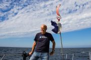 Since Mitch had opted out of the dives, he served as a surface swimmer. When the lift bags popped to the surface, Mitch swam out to them and towed them on the surface back to the boat. The crew was then able to pull the nets onboard and into the awaiting 55-gallon trash bin.