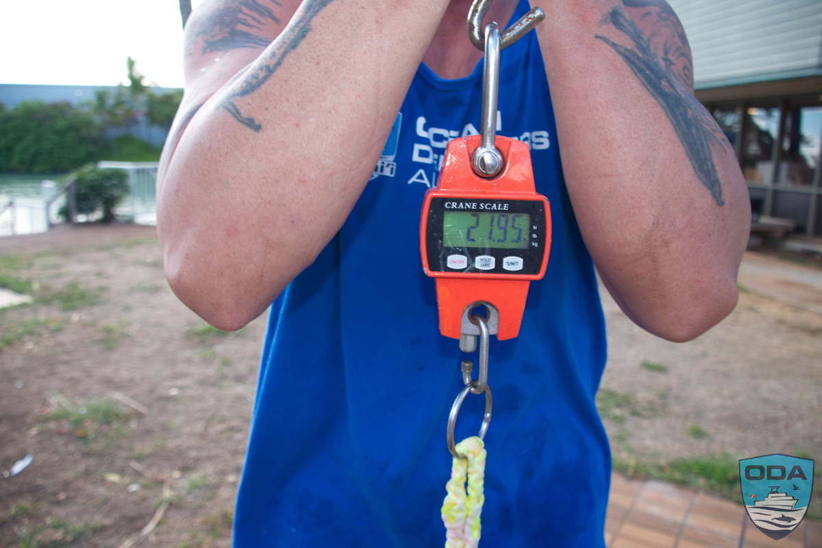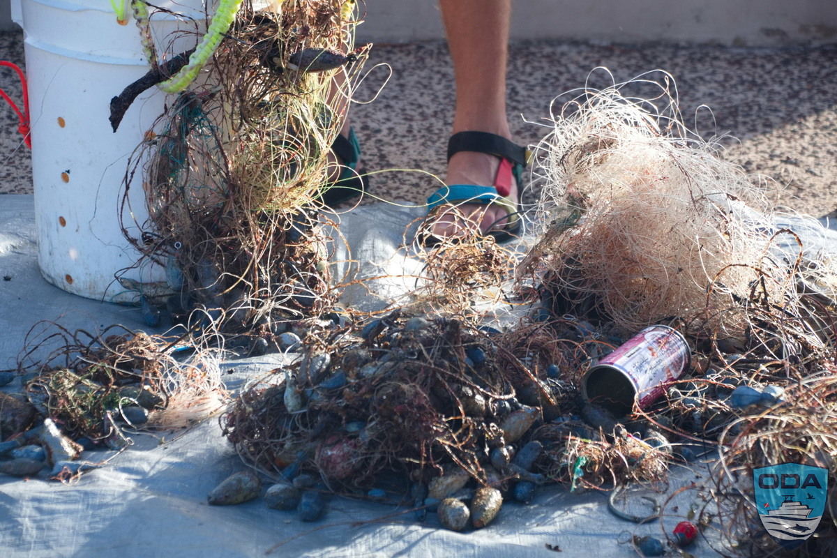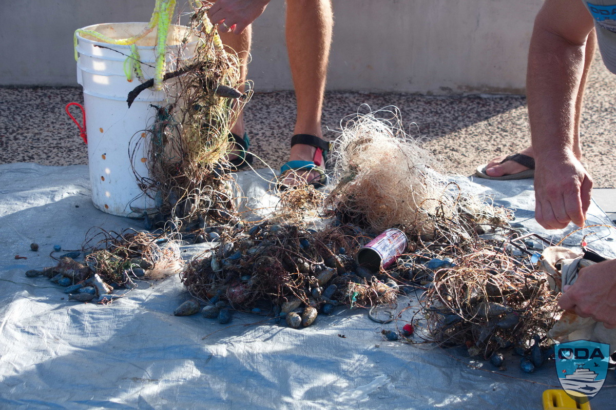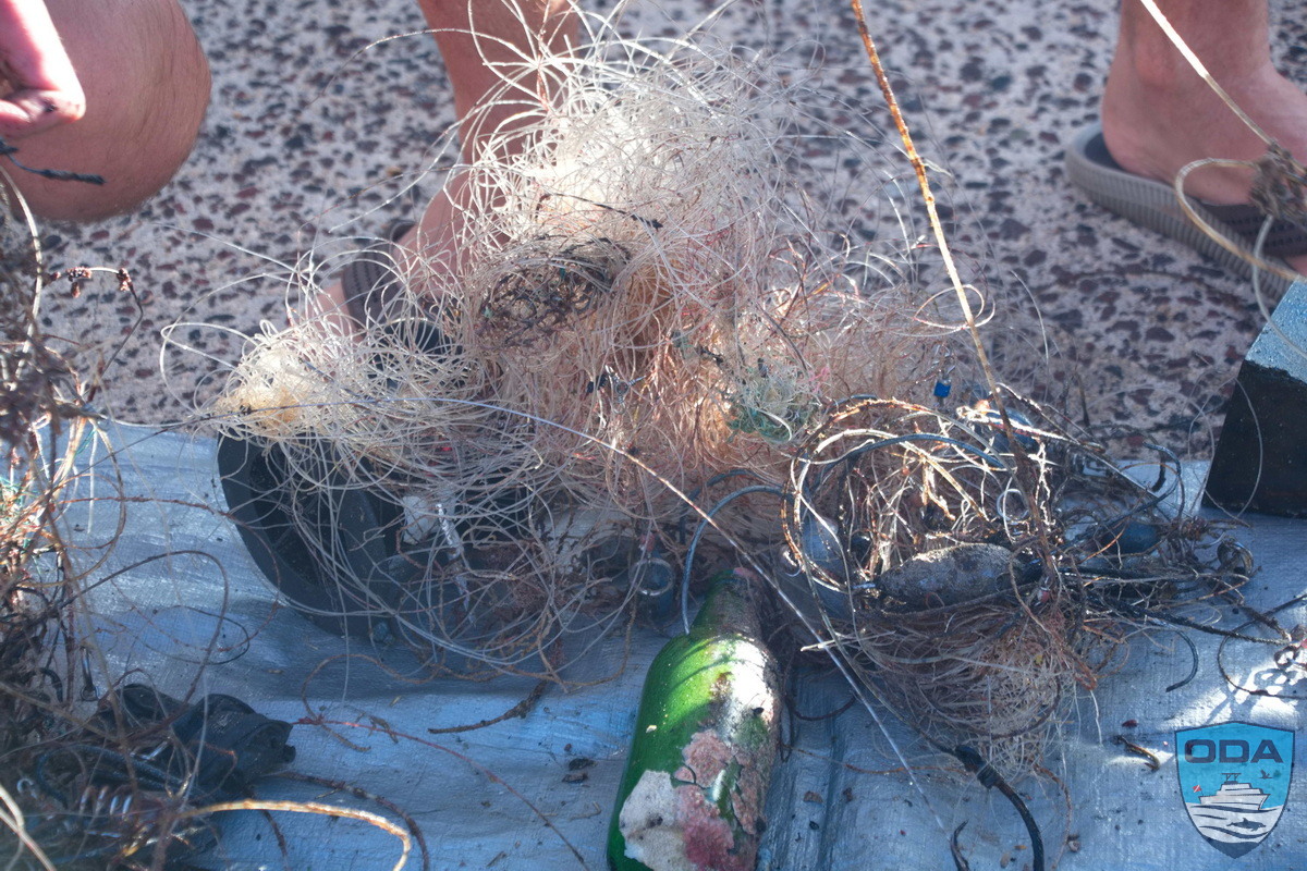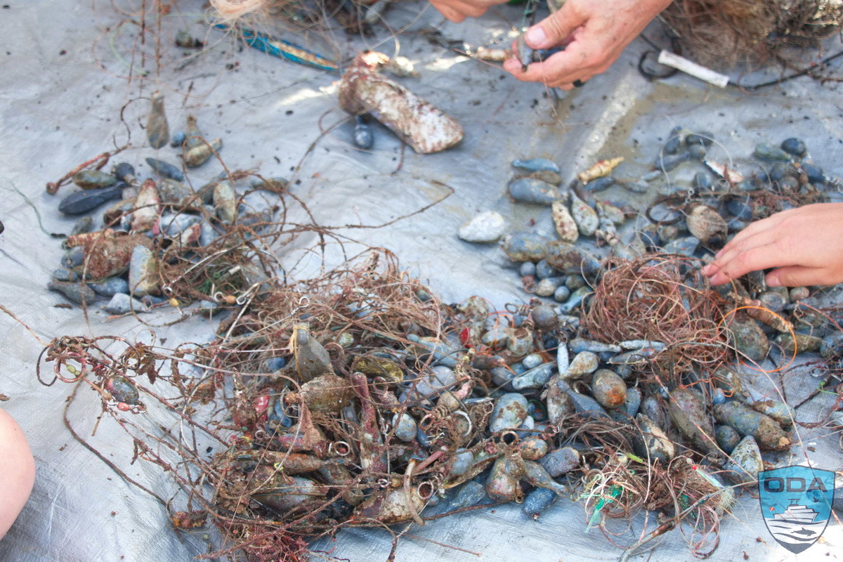 Through coordinated cutting, untangling, and lifting, the divers worked their way through the debris field. By the end of the dive, they surfaced with approximately 100 pounds of lead and fishing line, making this another successful debris removal.