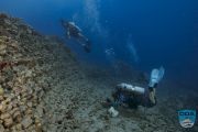 At Spitting Caves, divers encountered the site’s characteristic mix of lateral surge, pulsing current, and shifting underwater visibility. The contours of the reef, carved by powerful water movement, create pockets where debris collects, and the team was prepared for a productive dive.