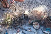 Almost immediately, the team began uncovering significant accumulations of lost fishing gear. Lead weights had settled deep into cracks and channels in the rock, and monofilament and braided fishing line were tightly wrapped around coral structures.