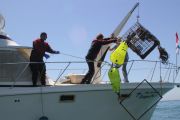 They surfaced a short time after that and swam back to the boat. As soon as they were back onboard, Jeff took the RIB out to retrieve the bags, attached a line to them and then towed it back to us.