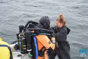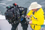 ODA technical divers Mike Wynd and Craig LaPorte volunteered to go down and have a look see, and film what they could so we all could get a better idea of what we were facing. Longtime volunteer Sue St. Sure and I were there as deck support to the divers.