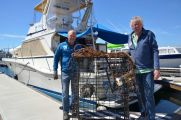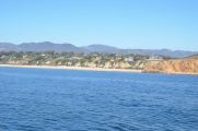 Two and a half hours after leaving San Pedro, we reached our destination: Point Dume. This is a site along the coast of Malibu where whales have been coming for centuries. This is also where the border to Santa Monica Bay lies. And since there is no commercial lobster fishing allowed inside they Bay, the fishermen drop their traps just along the other side of that boundary.