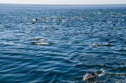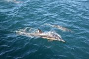 As soon as they heard our boat approaching they headed right for us…they wanted to have some fun and do some bow riding.For the next 20 minutes we were surrounded by common dolphins. It was thrilling, and at one point I stopped the boat entirely and shut down the engines. As the dolphins swam by us, it sounded like a raging river. Raging waters filled with dolphin squeaks and squeals.