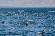 We hung around there for 20 minutes or so, and then saw what looked like boiling water out in the distance. As we got closer and closer we could see it was a pod of dolphins. But this was NOT a regular pod, this was a super pod. There had to be 1,000 animals in it!