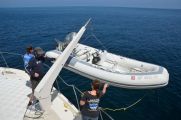 On Sunday, March 25th Gary Appel, Billy Arcila, Al Laubenstein, and Brooke LaDuecuer showed up to learn how to: run the generator, operate the davit, haul the anchor in and out of the water, and how to safely get the RIB (rigid inflatable boat) on and off the LegaSea.