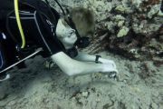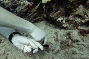If you look closely at the photo below, you can see this diver's hand is full of lead weights.