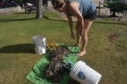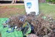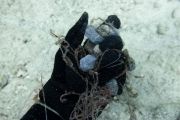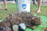 What did we find? There was a huge amount of monofilament line tangled in the coral and a large amount of lead fishing weights. We quickly filled two large buckets and several mesh bags with debris.