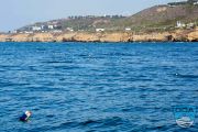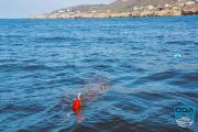 There were trap buoys as far as the eye could see, so I picked a route about 400 yards from shore and kept heading south until I got to the end of Point Loma, where there is a lighthouse.