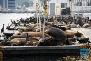 As I was heading back to the launch ramp I saw hundreds of Cormorants returning from the kelp beds. This time I decided to see where the heck they were going. Then I saw it, an area where thousands of them were perched. They were meeting with all their friends at a bar, a bait bar. 😉 There were over a hundred sea lions, a few fur seals, pelicans galore, some kingfishers and snowy egrets.