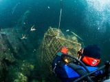 By now the current had really died down and after the dive team sent one more trap to the surface, they took time out to enjoy the wreck and film the sights.